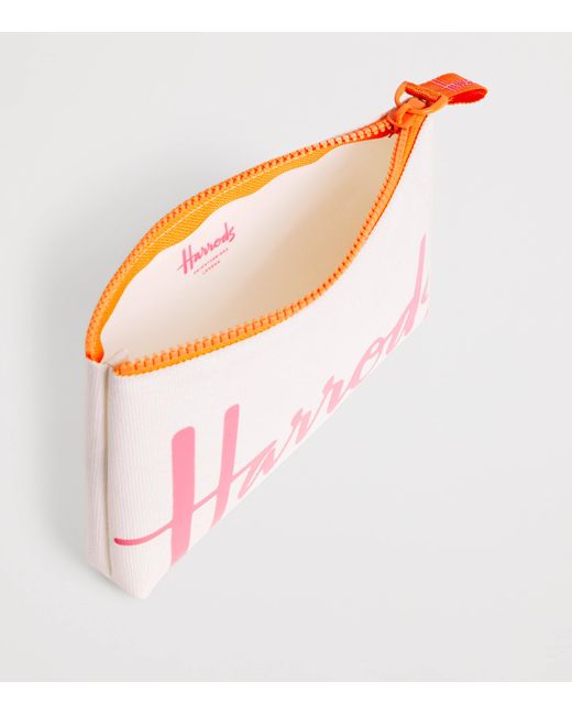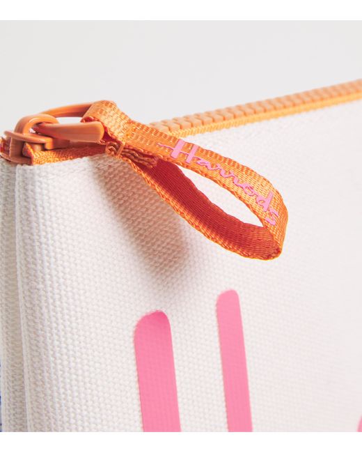 Whether you're storing everyday essentials or safeguarding monetary must-haves, a Harrods pouch offers effortless versatility. This edition spotlights the iconic logo in a vibrant font, offset by a playful pop of colour at the zip for a contemporary twist.