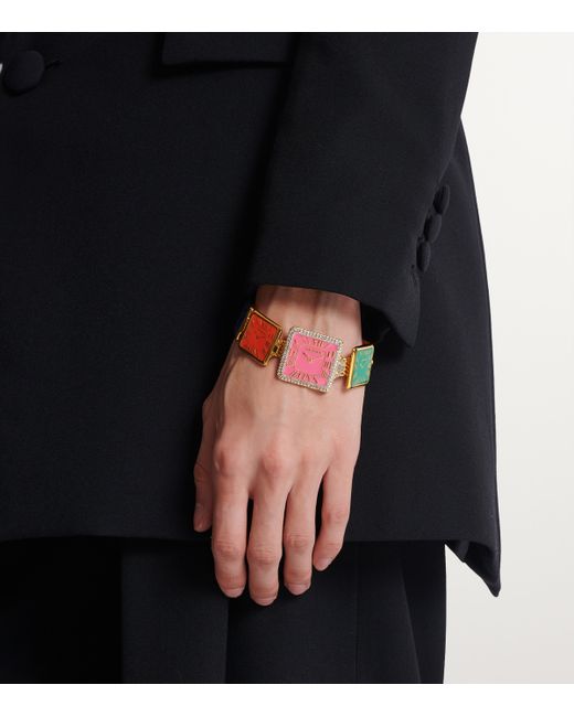 When reduced to its truest form, the watch is simply a classic form of wrist jewellery. With its usual insouciance, Balmain takes this truth and runs with it, adorning this chain bracelet with several two-dimensional watch faces made from brightly hued enamel. Note how the tongue-in-cheek piece bears the brand's moniker on each face, the gold-tone foil matching that applied to the timeless Roman numerals.