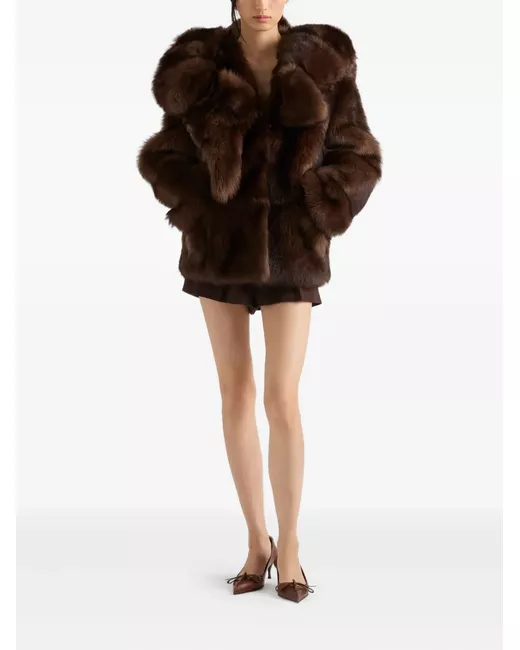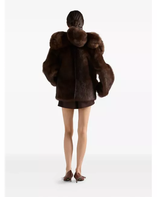 Women's Brown hooded shearling jacket