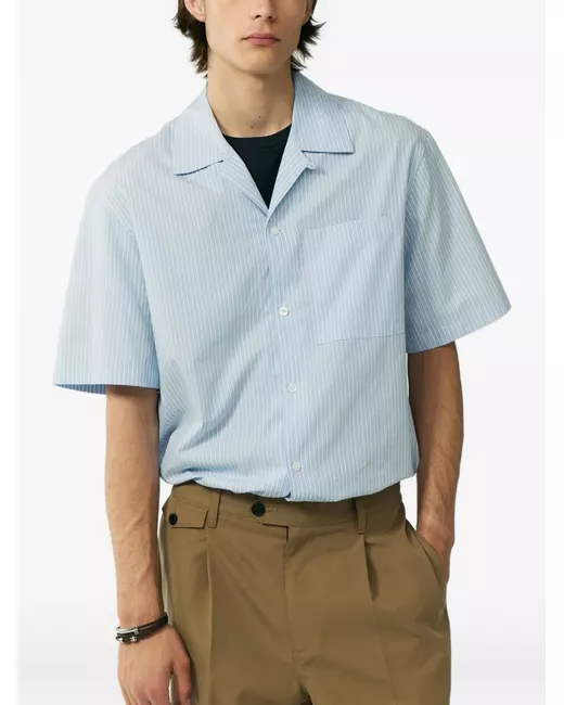 sky blue stripe pattern short sleeves chest pocket button fastening