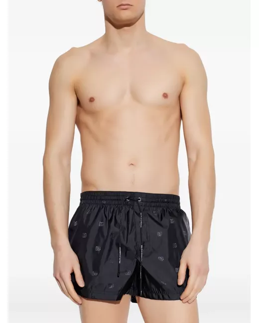 black logo print drawstring fastening side seam pockets rear zip-fastening pocket elasticated waistband Be mindful to try on swimwear over your own garments.