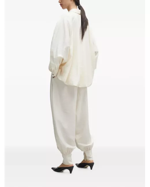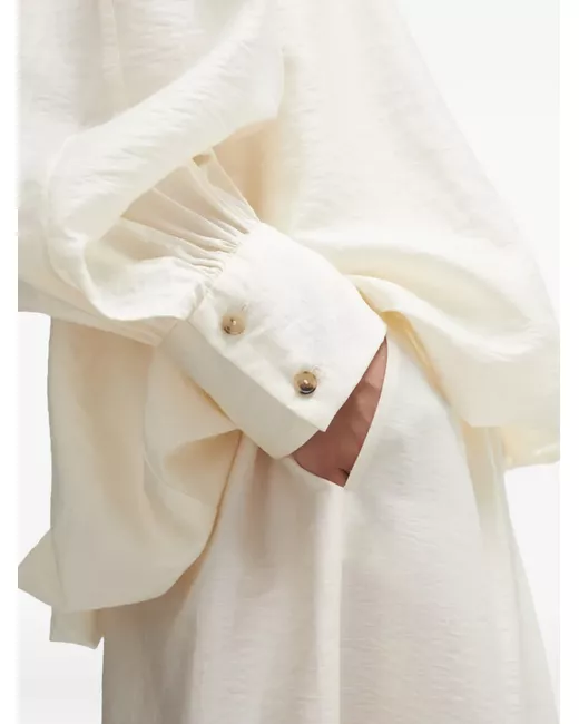 ivory button fastening balloon sleeves buttoned cuffs textured