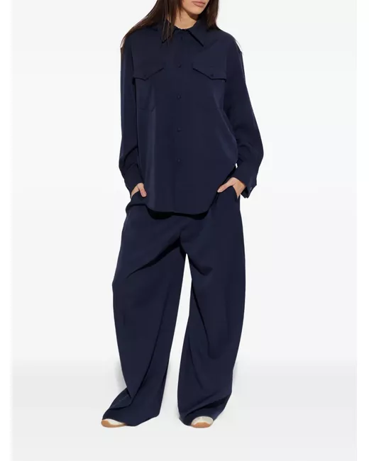 navy blue virgin wool button fastening chest flap pockets long sleeves