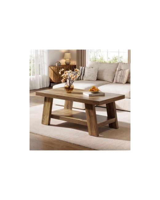 This Tribesigns farmhouse coffee table adds natural warmth with a vintage wood grain finish that brings timeless charm to your living room.