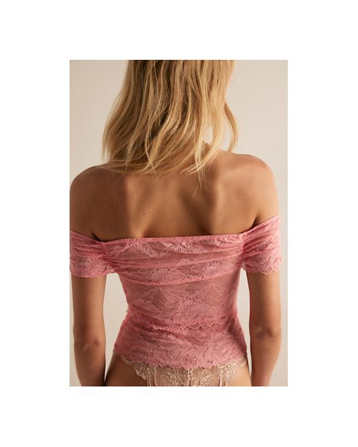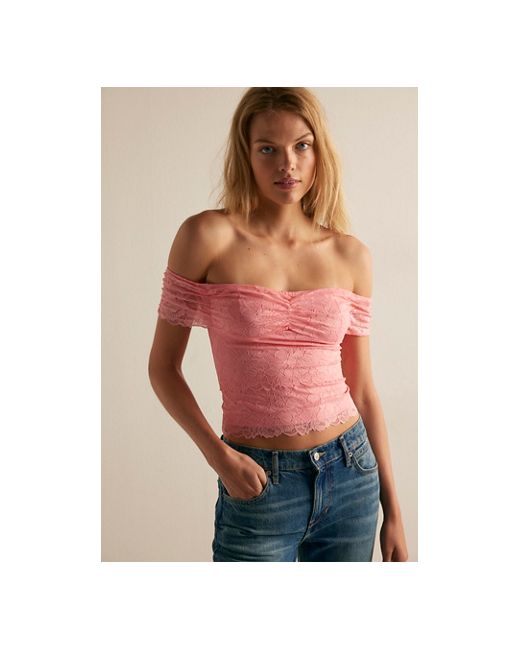 Alluring in all-over lace, this layering tee from Intimately features a charming off-the-shoulder silhouette, stirring along the bust for added texture, and a layered floral lace fabrication for a swoon-worthy style. * Stretch lace fabrication * Pull-on, cropped tee * Silicone elastic along the top for support * Lining at the front bodice * Scalloped hem Showing Off Layering Tee by Intimately at Free People in Sweetie Pink, Size: XS