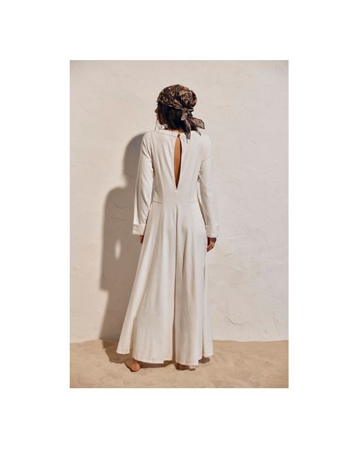 Comfy and absolutely eye-catching, this effortless jumpsuit from free-est features exaggerated details like extra-wide legs and an oversized keyhole for an elevated one-and-done moment. * Scoop neckline * Cotton jersey fabrication * Side pockets * Cuffed long sleeves Strada Jumpsuit by free-est at Free People in Ivory, Size: XS