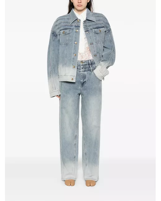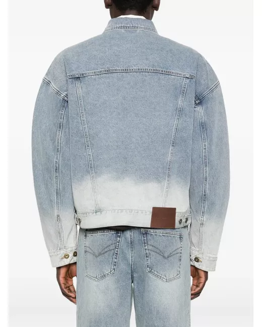 blue panelled construction chest flap pockets button fastening classic collar side welt pockets