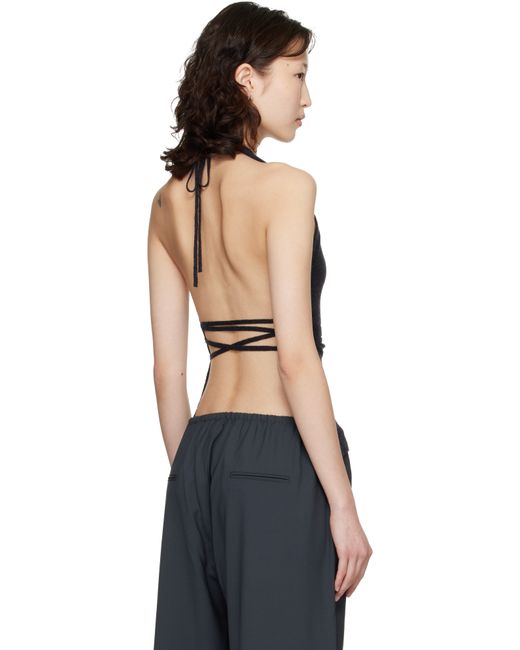 Knit extrafine merino wool top. · Can be worn multiple ways · Self-tie halter strap · Plunging cowl neck · Self-tie straps at waist · Open back Supplier color: Anthracite