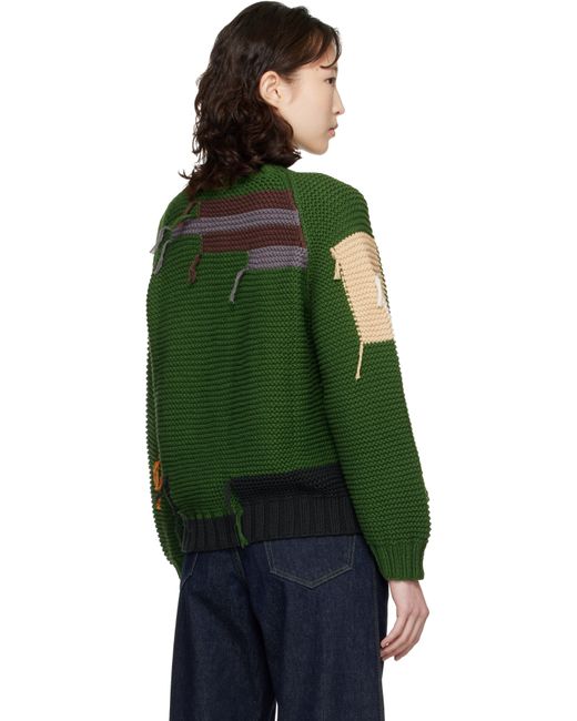 Garter-stitch knit cotton cardigan. · Colorblocking and loose threads throughout · Rib-knit crewneck, hem, and cuffs · Button closure · Raglan sleeves · Corozo hardware Supplier color: Green
