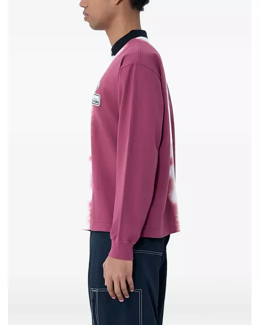 purple point collar logo patch long sleeves