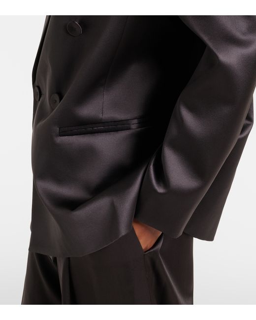 Material: 100% silk. Care instructions: dry clean. Made in China. Designer color name: Carbon. Lining: 100% silk. Silk. Peak lapel. Pockets: jetted. Closure: double-breasted (six buttons). Vent: no vent.