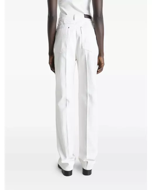 white high-waisted straight leg double-button fastening jacron detail five pockets
