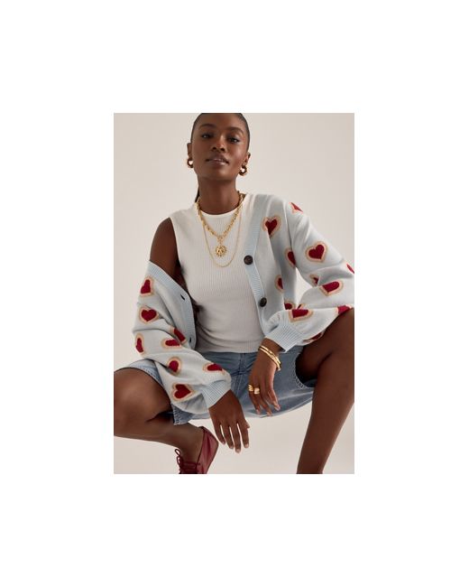 By Never Fully Dressed 48% Viscose, 29% Polyester, 23% Nylon Button front Machine wash Imported Heart Cardigan by Never Fully Dressed Size: XS, Polyester/Nylon/Viscose at Anthropologie