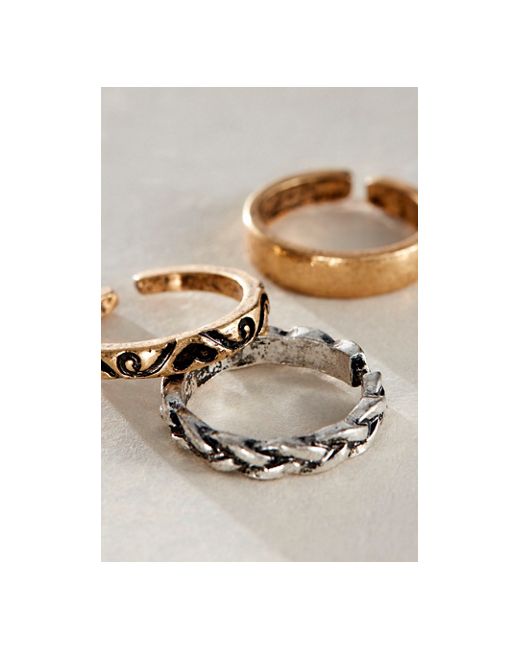 Add the coolest touch to your jewelry collection with this effortless set of 3 toe rings featured in mixed metals with etching and subtle distressing for the perfect vintage-inspired finish. Keeper Toe Ring Set at Free People in Mixed Metal