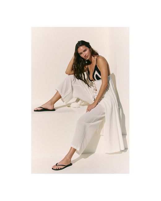 Chase the sun in this pant set from free-est, featuring a fly-away style maxi top with crochet cups and relaxed cropped pants, all in a vintage-inspired cotton with a natural textured finish. **Top:** * Crochet triangle cups * Tie-front closure * Adjustable tie-straps * Fly-away style * Midi length **Pants:** * Drawcord waistband * Side pockets * Cropped length Sunnier Somewhere Cotton Pant Set by free-est at Free People in Black And White Combo, Size: XS