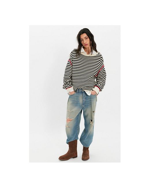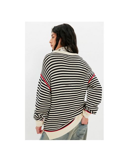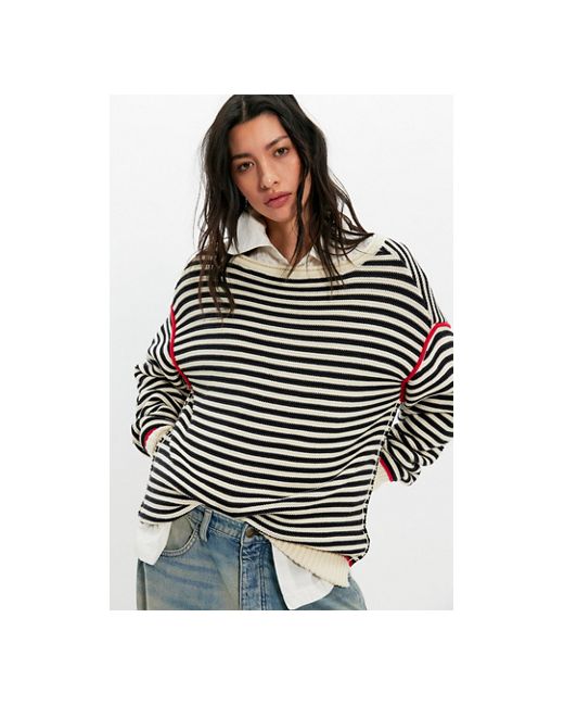 We're seeing stripes with this staple pullover from We The Free, featured in a classic cotton knit with contrasting piping and ribbed trims for the perfect bold-yet-go-to option. * Rolled boat neckline * Oversized fit * Dropped shoulders We The Free Asher Pullover at Free People in Black Combo, Size: XS