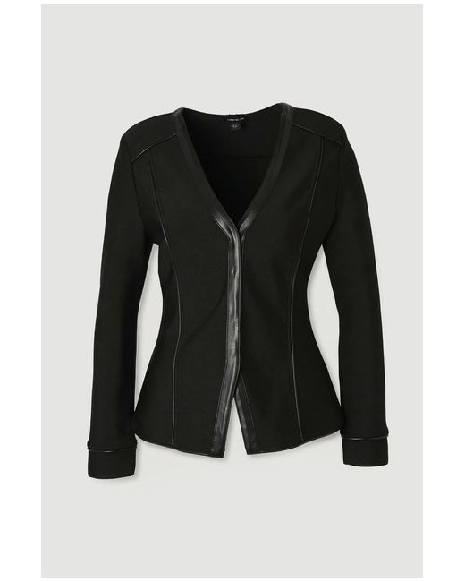 Main: 97% Recycled Polyester, 3% Elastane. Binding: 50% Polyester, 50% Polyurethane. Machine wash. Models wears UK size Petite Small. Models height approx: 5"3. KARENMILLEN Petite Bandage PU Detail V Neck Top.
