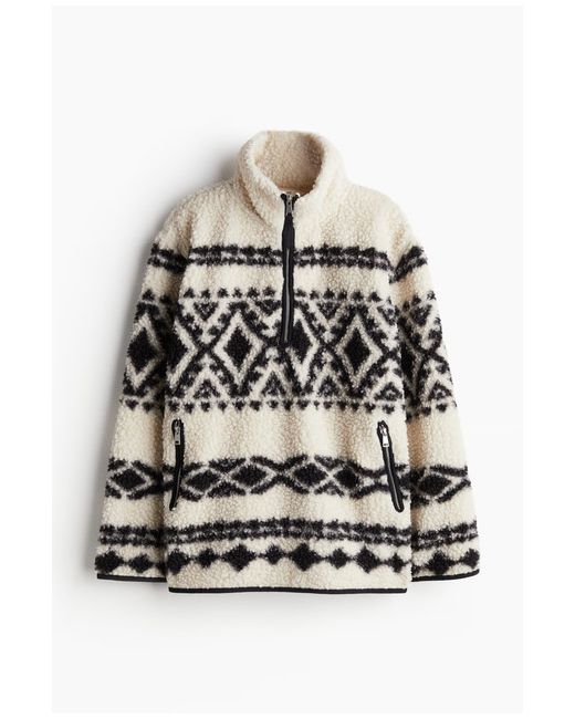 Jacket in soft teddy with contrasting-colour, coated piping. Stand collar, zip down the front, dropped shoulders, long sleeves and pockets in the side seams. Jersey lining. Fit: Loose fit. Length: Regular length.