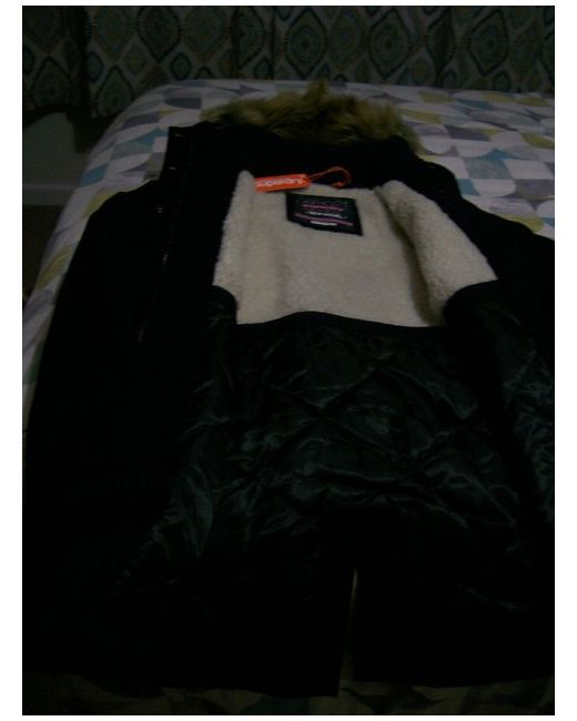Superdry Womens MicroFibre three Quarter Length Jacket. Faux Fur Lined Hood and Inside Top Panel for extra warmth. Cuffed Sleeves ..2 Slant Side Pockets.. with press studs..Fur Trimmed Hood..Size Small 14/16...New Cost £120 from Next Uk.