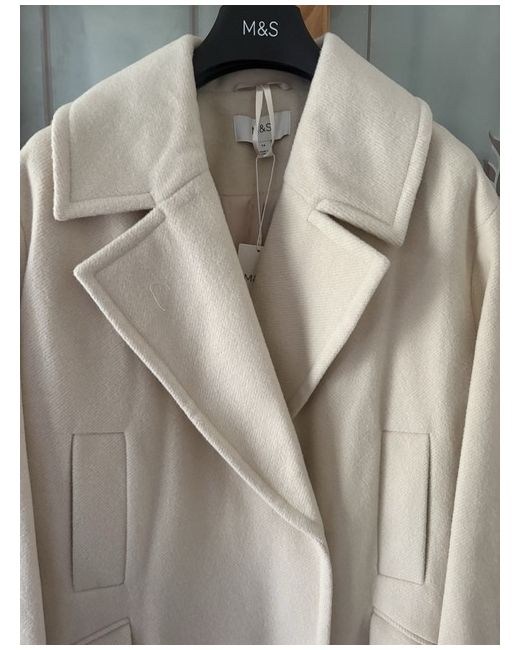 This Marks & Spencer Twill Double Breasted Longline Tailored Coat in size 14 is a classic ivory overcoat perfect for winter. Made from polyester with a polyester lining, it features a button accent and a regular fit. The long length and tailored design make it suitable for casual occasions, adding a touch of elegance to any outfit. Perfect for women looking for a stylish and practical winter coat from a trusted brand like Marks & Spencer.
