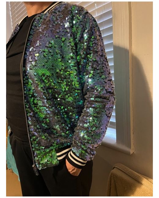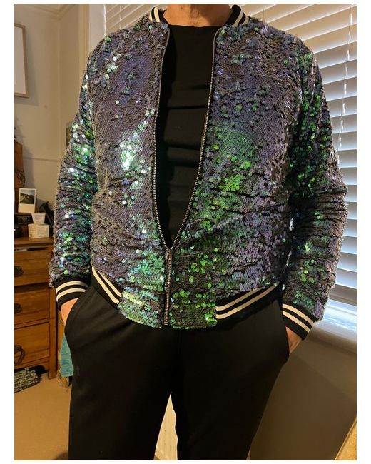 The TSwift Jaded London Green Sequin Bomber Jacket is a limited edition piece that exudes London style. Made by the iconic brand Jaded London, this jacket features a shimmering sequin outer shell in a striking green colour. Perfect for women in size M, this bomber jacket is a statement piece with a unique design that is sure to turn heads. Ideal for adding a touch of glamour to any outfit, this limited edition jacket is a must-have for those looking to make a fashion statement.