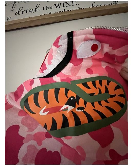 This A Bathing Ape Zip Up Hoodie in pink is a stylish and comfortable addition to any woman's wardrobe. Made from cotton, this size M hoodie features long sleeves, a full zip design, and a regular fit. Perfect for activewear, this hoodie can be easily cared for with machine washing. The brand's unique style and the vibrant pink colour make this hoodie a statement piece for those looking to stand out.