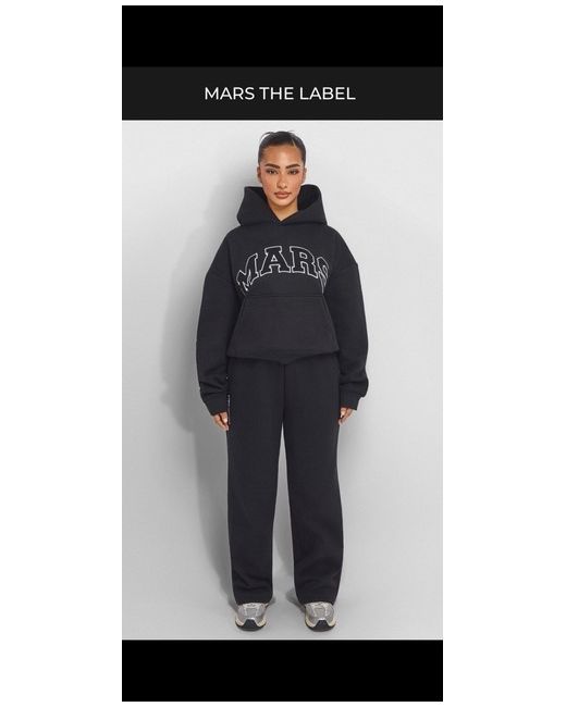 A sleek black Mars The Label women’s tracksuit featuring an oversized hoodie with bold “MARS” lettering and matching straight leg sweatpants, combining modern streetwear style with all-day comfort.