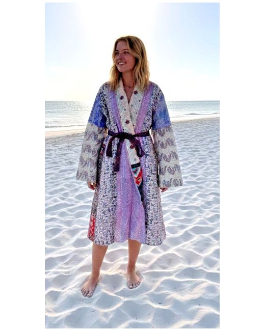 Our Kimonos are very versatile and can be used as a dressing gown, a beach cover up, a wrap around dress or overdress. These kimonos are not only visually striking but also sustainable. By repurposing old saris, they support ethical fashion and reduce textile waste.