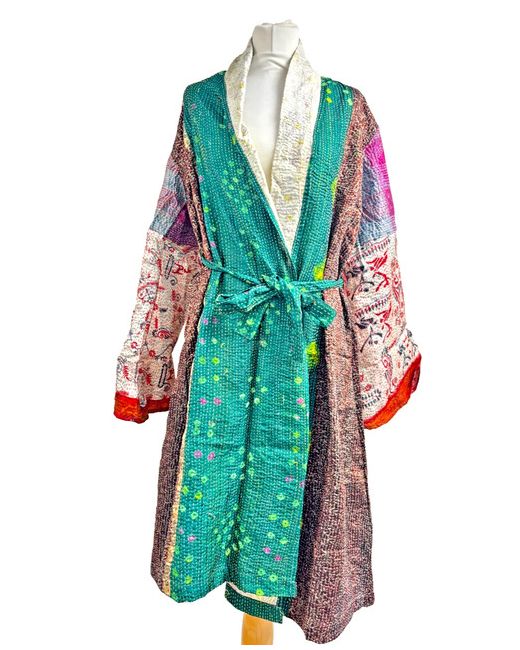 Our Kimonos are very versatile and can be used as a dressing gown, a beach cover up, a wrap around dress or overdress. These kimonos are not only visually striking but also sustainable. By repurposing old saris, they support ethical fashion and reduce textile waste.