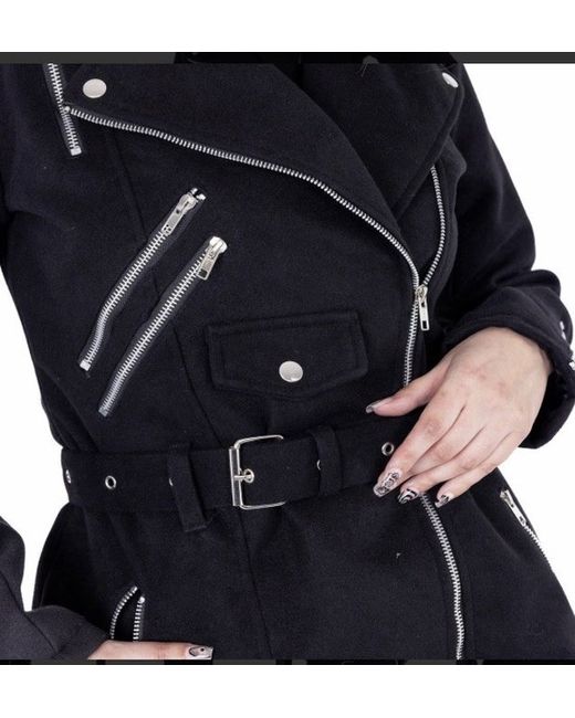 The Vixxsin Louella Black Coat is a stylish and edgy addition to any woman's wardrobe, perfect for those who embrace a goth, emo, or punk aesthetic. Perfect for those who want to stand out from the crowd and showcase their unique style.