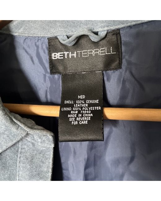 The Beth Terrell Light Blue Suede Jacket in medium size is a stylish and versatile outerwear option for women. Made from leather with a mid-length cut, this casual jacket is perfect for the spring season. The light blue colour adds a pop of freshness to any outfit, while the polyester insulation material ensures comfort. With a basic jacket style and no vintage or personalisation features, this Beth Terrell jacket is a timeless wardrobe staple that can be worn for various occasions.