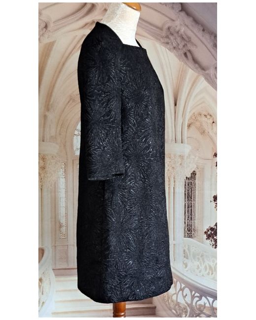 ADOLFO DOMINQUEZ BLACK DRESS. Ladies black, fully lined patterned dress from Adolfo Dominquez Costura, made from 100% polyester with 100% acetate lining.