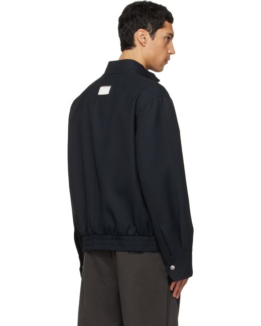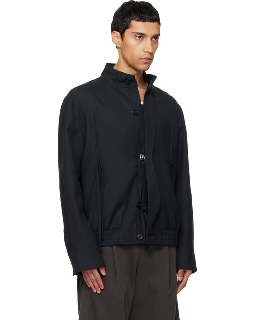 Superfine merino wool-blend crêpe jacket. · Stand collar · Button tab and cutout at button closure · Sterling silver hardware at button closure · Welt pockets with extended trim at front · Elasticized hem · Press-stud barrel cuffs · Cutout at back collar · Full satin lining Supplier color: Midnight