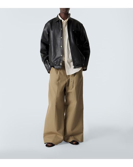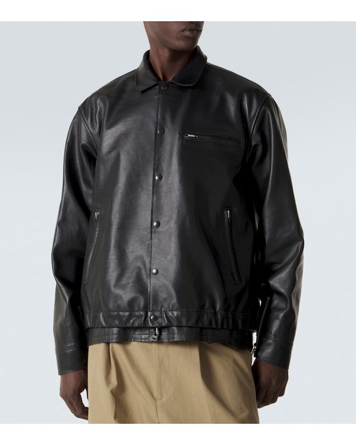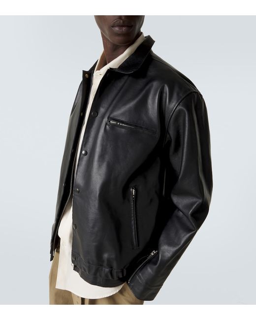 Material: 100% leather. Care instructions: specialist clean. Made in Japan. Designer color name: Black. Lining: 100% cupro. Contains non-textile parts of animal origin. Closure: concealed zipped front, snap-buttoned front. Collar: classic (Straight point). Cuff: zipped, tab cuff. Pockets: zipped pockets. Adjustable tabs at the waist. Hem: elasticated. Leather.