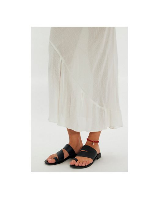 So simple, go-to sandals featured in a buttery soft leather and flat-sole style with wide straps, toe-loop detailing, and a cozy cushioned footbed. * Flat sole * Slip-on style * Cushioned footbed Abilene Toe Loop Sandals by Free People in Washed Black, Size: EU 36