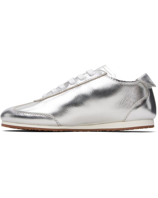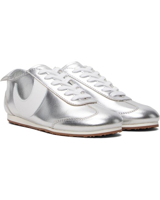 Low-top laminated leather sneakers. · Lace-up closure · Logo embossed at padded tongue · Logo appliqué at outer side · Logo printed at foldover heel tab · Calfskin lining · Foam rubber midsole · Treaded rubber sole Supplier color: Silver
