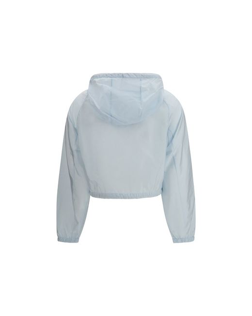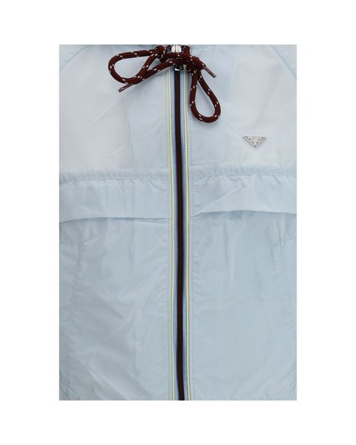 The Re-Nylon Windbreaker by Prada is a versatile and functional garment made from Re-Nylon, a high-quality sustainable material. With a cropped fit, it is embellished with the distinctive metal logo triangle on the chest. The drawstring hood and zip closure ensure practicality, while the two flap pockets and two slit pockets on the front offer extra storage space. The elasticated gathered cuffs and drawstring hem complete the design, ensuring comfort and an adjustable fit. Season: SS26 Fit: Regular Composition: 100% Recycled Polyamide