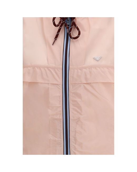 The waterproof Jacket by Prada is the ideal accessory for facing inclement weather in style. Featuring a hooded design and front zip closure, it offers practicality and protection. The drawstring allows you to adjust the fit, while the two side pockets and two front pockets provide extra space for essential items. The drawstring hem allows you to customize the fit. Completed by the iconic triangular plaque on the front, this jacket combines functionality with Prada’s distinctive design. Season: SS26 Fit: Regular Composition: 100% Recycled Polyamide