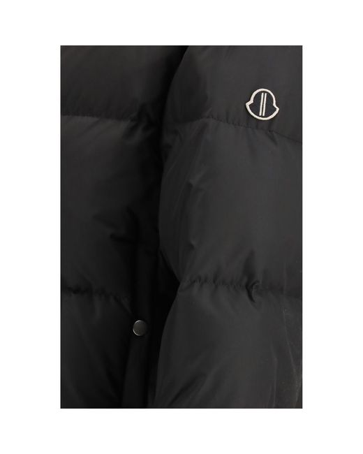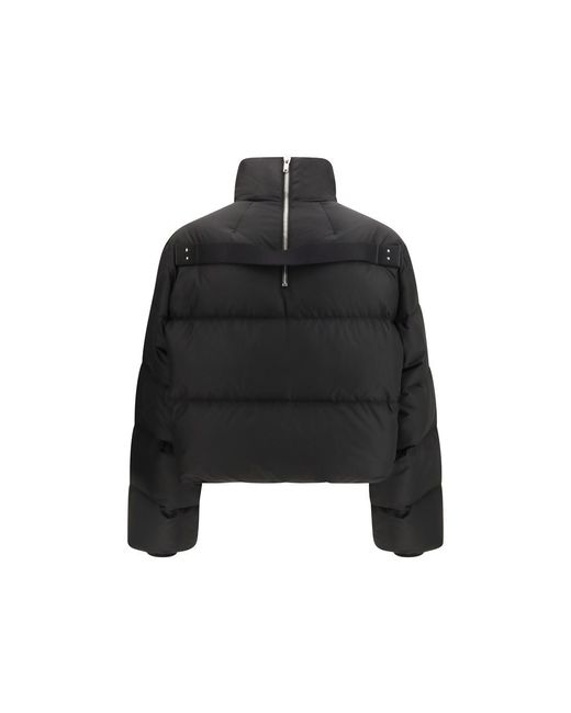 The Cyclopic cropped Down Jacket by Moncler + Rick Owens combines style and functionality, with a high collar and front zip closure. The zipper at the back, ribbed wool cuffs, and padded, quilted design create a modern, structured look. The side welt pockets with buttons add practicality, while the iconic logo patch on the left arm completes the garment with a distinctive touch. Season: SS26 Fit: Regular Composition: OUTER 100% Polyester INNER 100% Goose Down