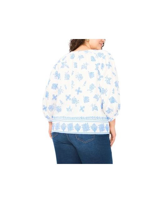 Lean into effortless boho romance with this Vince Camuto blouse, styled with a ruffled neckline and adjustable front ties for customizable charm. Fixed smocking and thread tassels add artisanal detail to the 3/4-sleeve silhouette. About The Brand: Vince Camuto is a globally renowned brand that embodies European styling. Detailed craftsmanship across the line embraces current trends while maintaining a classic aesthetic.