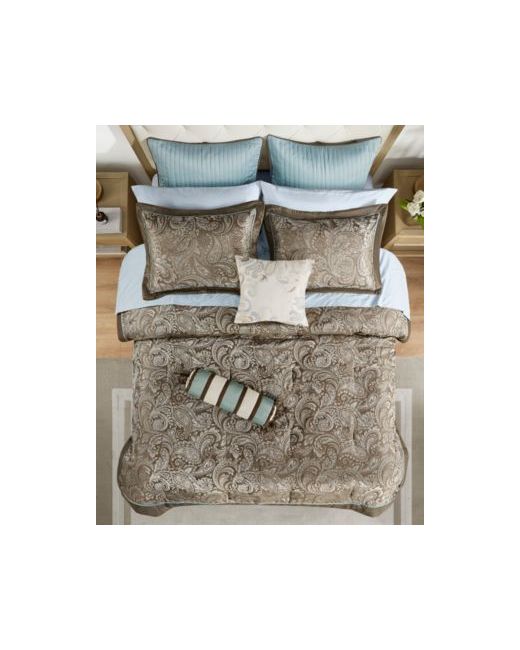 This stunning set features a jacquard weave with a modern paisley pattern. The comforter and shams have a 2 flange and 1/2 flat piping for a refined touch. The comforter reverses to a shade that complements the 100% cotton, 200 thread count sheet set.