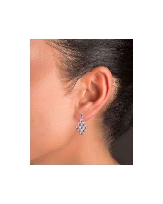 Dramatic sparkle elevates these dangling earrings from Macy's, showcasing blue sapphires and diamonds set in 14k white gold. The refined design lends sophistication to any occasion.