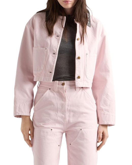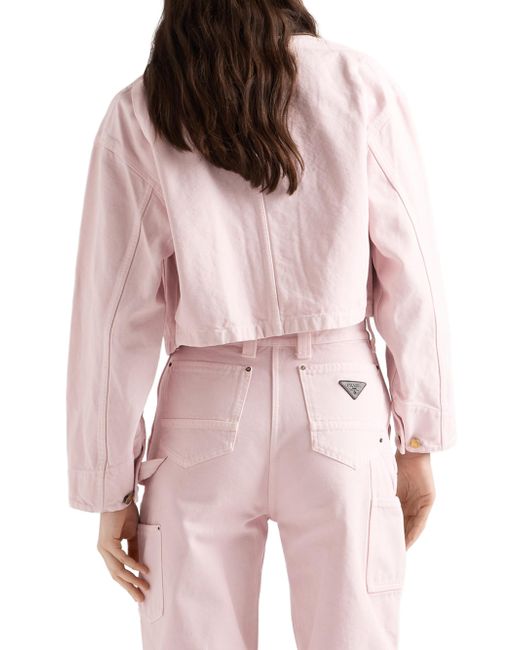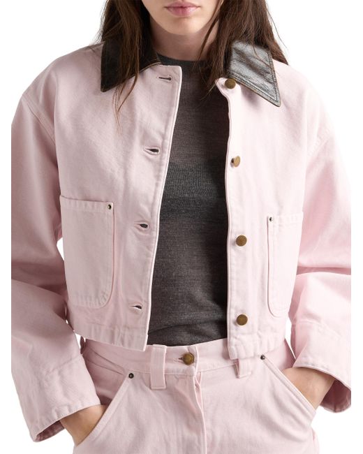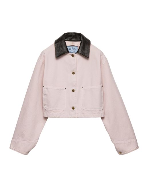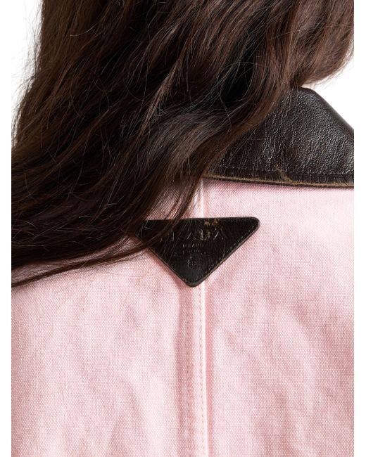 Canvas blouson jacket. Unlined Leather collar Long sleeves Buttoned cuff Button closure Patch pockets Leather triangle logo Dyed and washed treatment Matching stitching Pressed garment 100% cotton, 100% capra hircus leather Imported. Lsd Rtw - Prada Rtw > Prada > Saks Fifth Avenue. Prada. Color: Pink. Size: 2.
