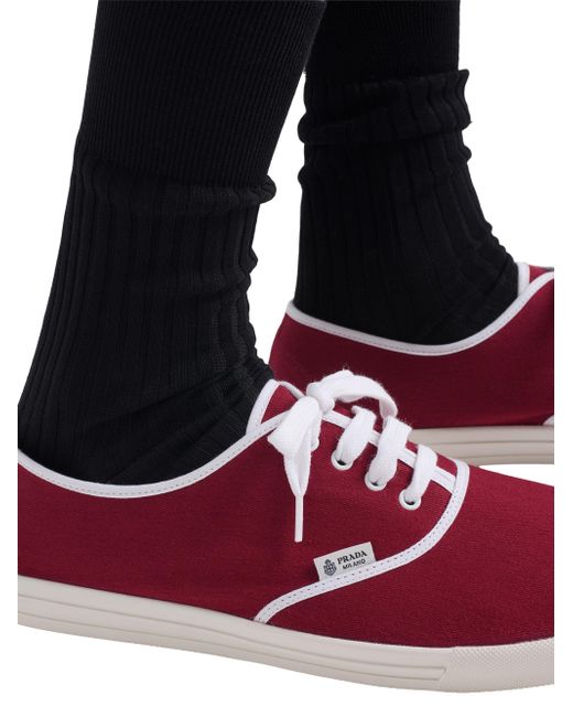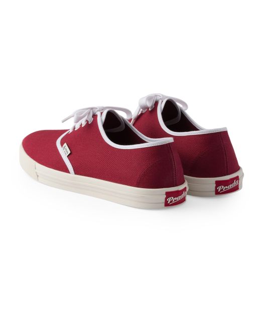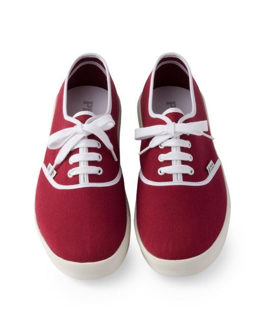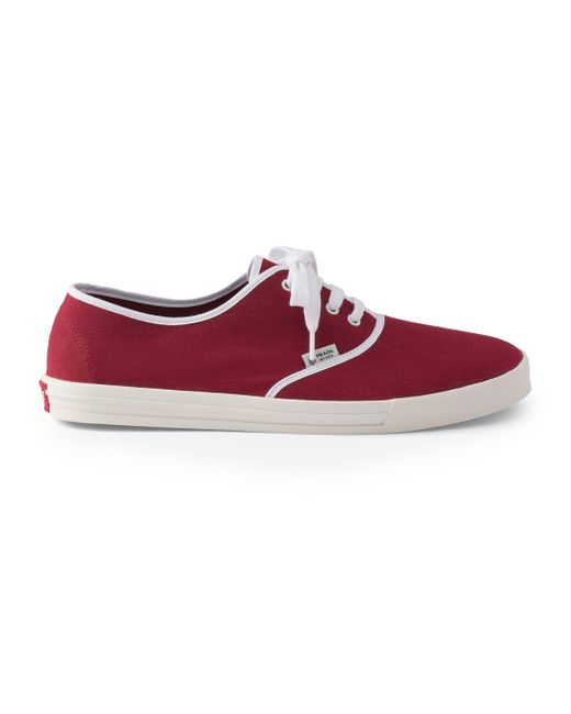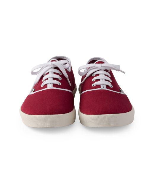 Fabric upper With metal eyelets and cotton laces Upper edged with trim Screen-printed logo Elastic Rubber sole Patterned rubber tread Non-removable fabric insole Imported 100% Cotton. Lsd Rtw - Prada Rtw > Prada > Saks Fifth Avenue. Prada. Color: Dark Red. Size: 7.5.