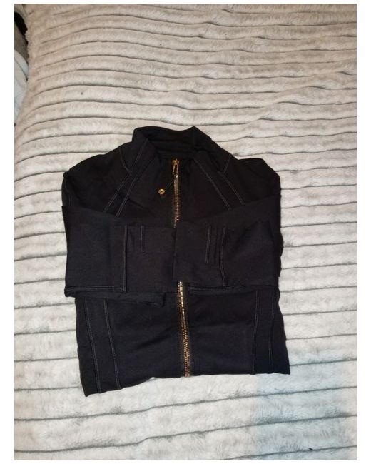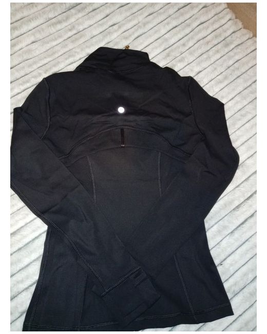A lululemon classic designed to move with you. This black Define Jacket features a sleek, body-skimming fit with contoured seams that flatter your shape while providing lightweight warmth. Made with smooth, stretchy performance fabric, it offers four-way stretch and sweat-wicking comfort for workouts, errands, and everyday wear. Finished with a luxe gold full-length zipper, thumbholes, and secure zippered pockets, this jacket combines performance and elevated style.