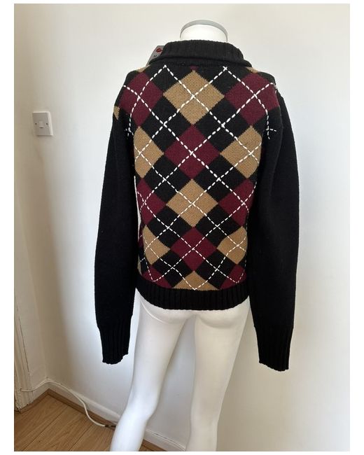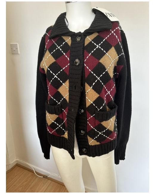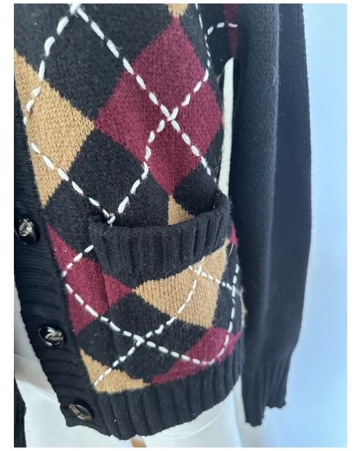Burgundy 100 Wool Knit Argyle Cardigan S