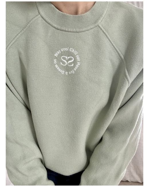 Sandro sweatshirt in a soft sage green colour. Features a classic crew neckline, long raglan sleeves, and ribbed finishes at the collar, cuffs, and hem.