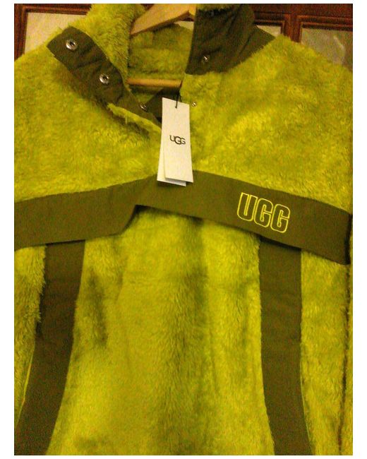 The product is a new lime UGG sherpa thick jumper in size medium. Made by UGG Australia, this women's jumper features a round neck, long sleeves, and a pullover style. The jumper is crafted from sherpa fabric, giving it a warm and cozy feel. The vibrant lime colour adds a pop of colour to any outfit, making it a stylish and practical addition to any woman's wardrobe. so cosy and trendy
