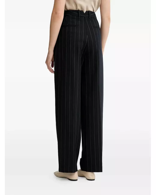 navy pinstripe belt loops rear welt pocket front pleats wide leg
