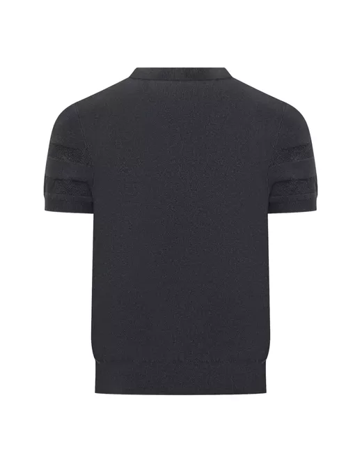 dark navy blue short-sleeves textured panels round-neck lettering-embroidered